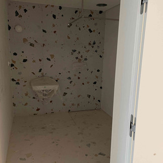 V koupelnách jsou již nainstalována umyvadla a toalety.